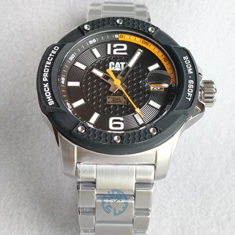 ساعت مچی مردانه اسپرت کاترپیلار با قاب گرد 46 میلیمتری از استیل 316 ضدحساسیت، استحکام و زیبایی را در کنار هم قرار میدهد. صفحه زرد و مشکی جسارت و انرژی را به نمایش میگذارد و بند استیل با قفل ضامندار، راحتی و امنیت را تضمین میکند. این ساعت تنها یک اکسسوری نیست، بلکه همراهی مطمئن برای استایل روزمره و رسمی شماست.