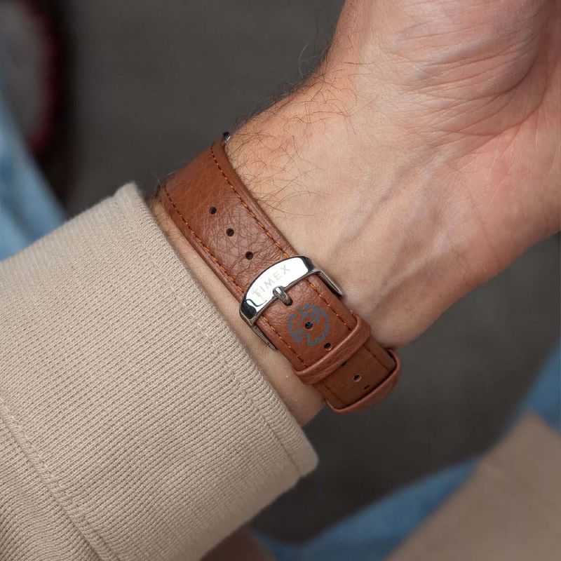در طراحی ساعت تایمکس TW2V46500، ظرافت و راحتی بهخوبی رعایت شده است. قاب گرد این ساعت از استیل ضد حساسیت ساخته شده و قطر ۴۰ میلیمتری آن، تناسبی عالی با مچهای مختلف ایجاد میکند. بند چرمی قهوهای رنگ بههمراه قفل سگکی، راحتی را هنگام استفاده طولانیمدت تضمین میکند. صفحه سفید با عقربههای آنالوگ و شیشه هارد کریستال ضدخش، زیبایی و مقاومت را بهصورت همزمان ارائه میدهد.